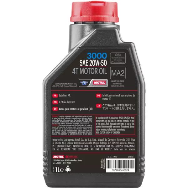 El MOTUL 3000 20W-50 es un aceite mineral de alto rendimiento para motos 4 tiempos, diseñado para ofrecer protección confiable del motor, lubricación eficiente y desempeño estable en condiciones de uso exigente y altas temperaturas.